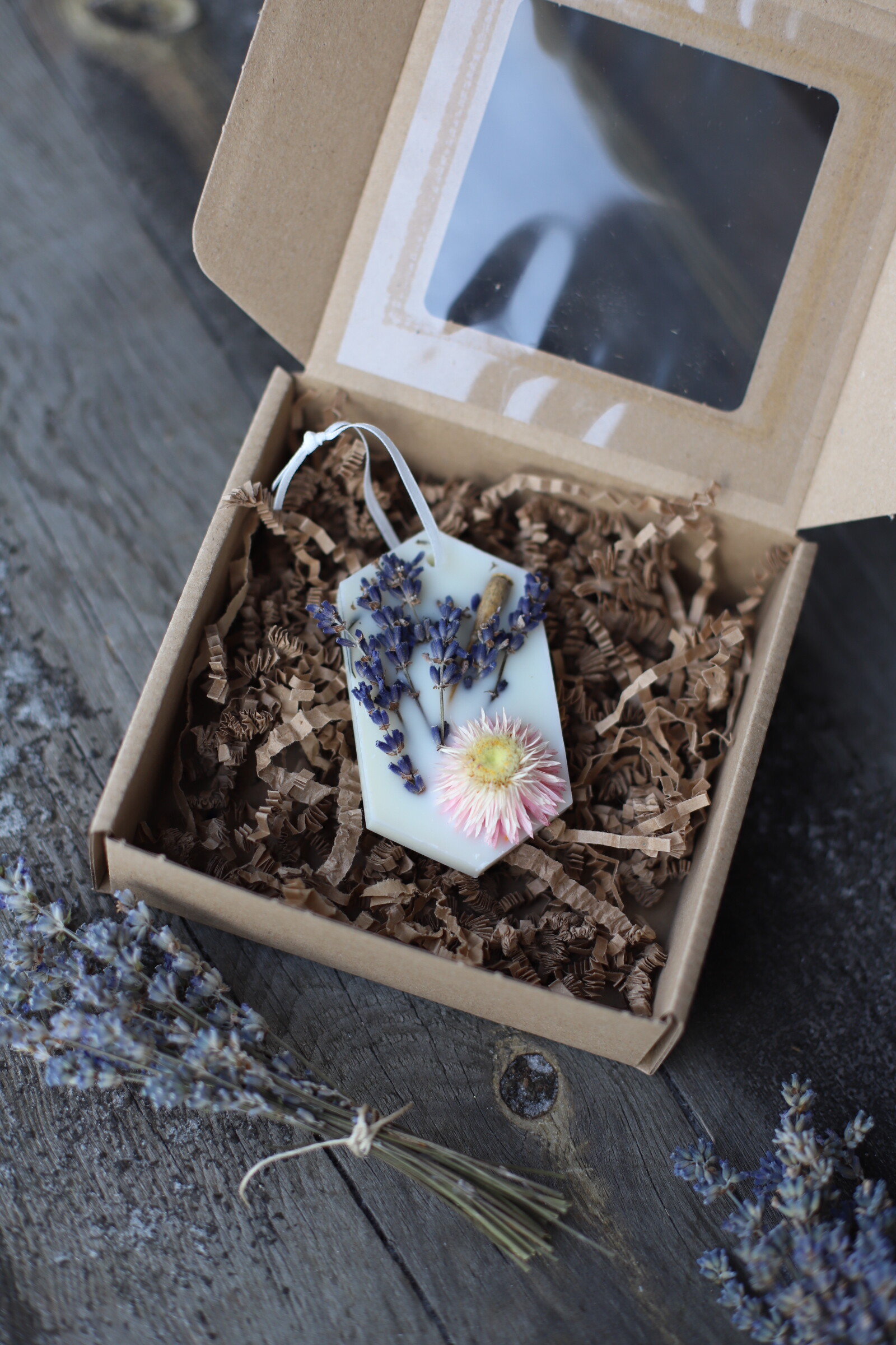 Każda zawieszka zapachowa pakowana jest w estetyczne tekturowe pudełko z okienkiem, wyłożone papierową ściółką. Produkt jest gotowy do wręczenia na prezent – bez potrzeby dodatkowego pakowania.