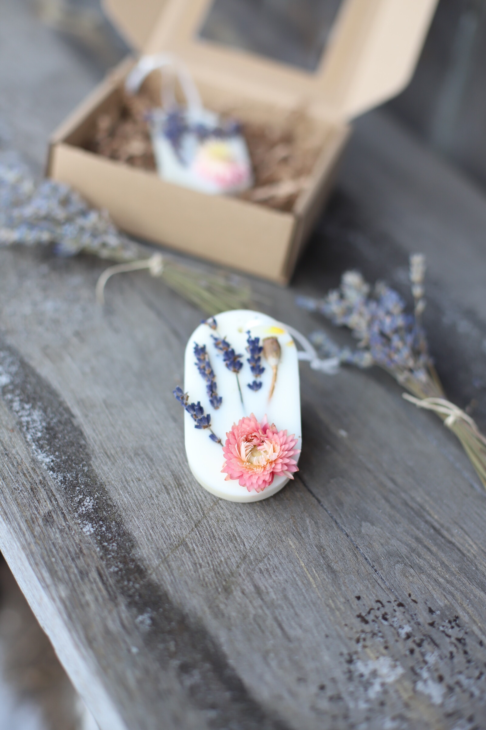 Tabliczka florencka – sojowa zawieszka zapachowa z lawendą i różową kocanką
