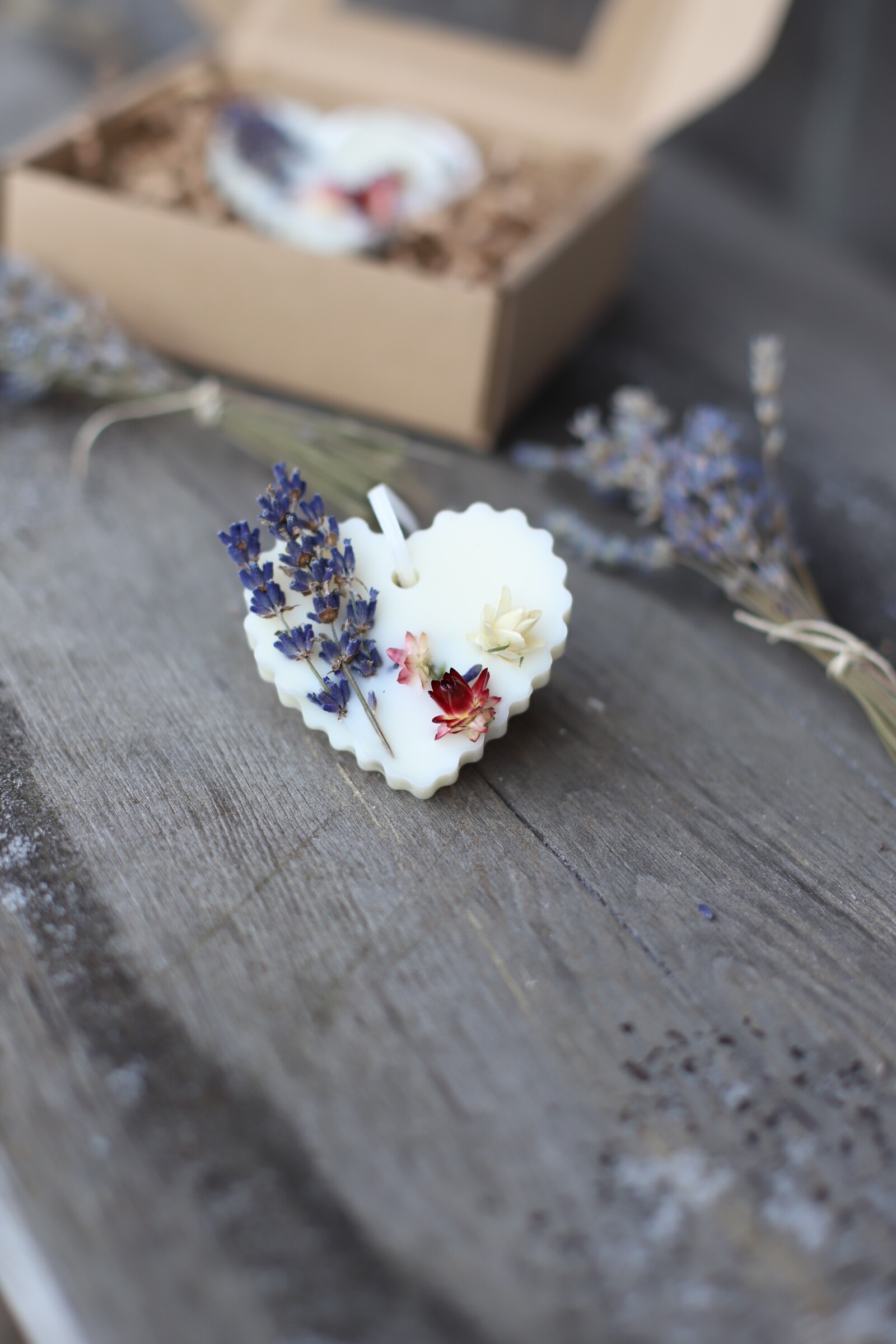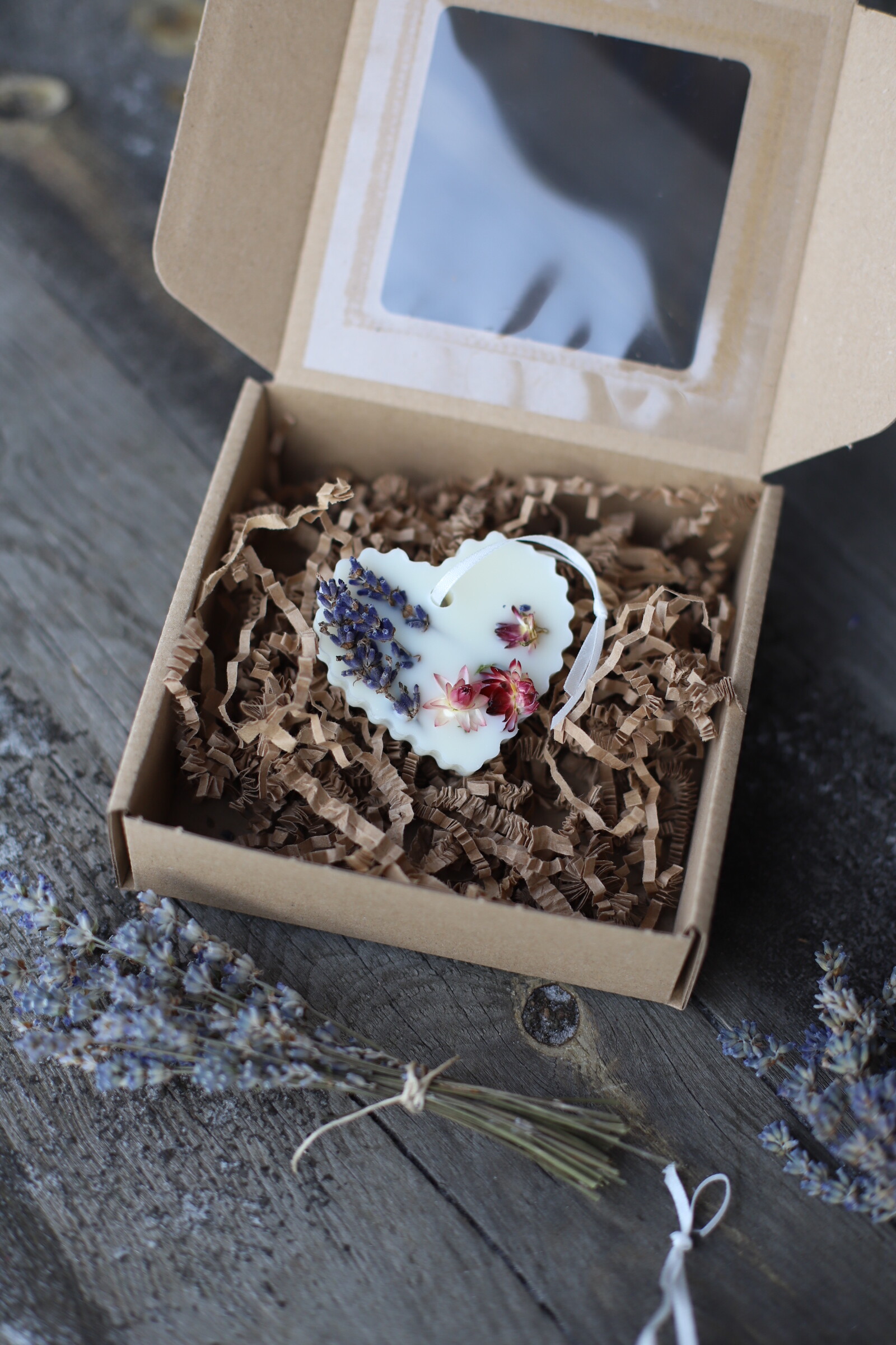 Tabliczka florencka – sojowa zawieszka zapachowa w kształcie serduszka z lawendą i różową kocanką