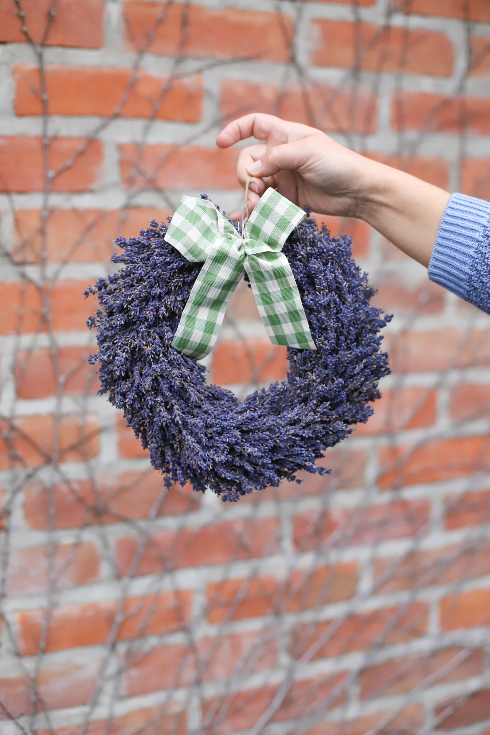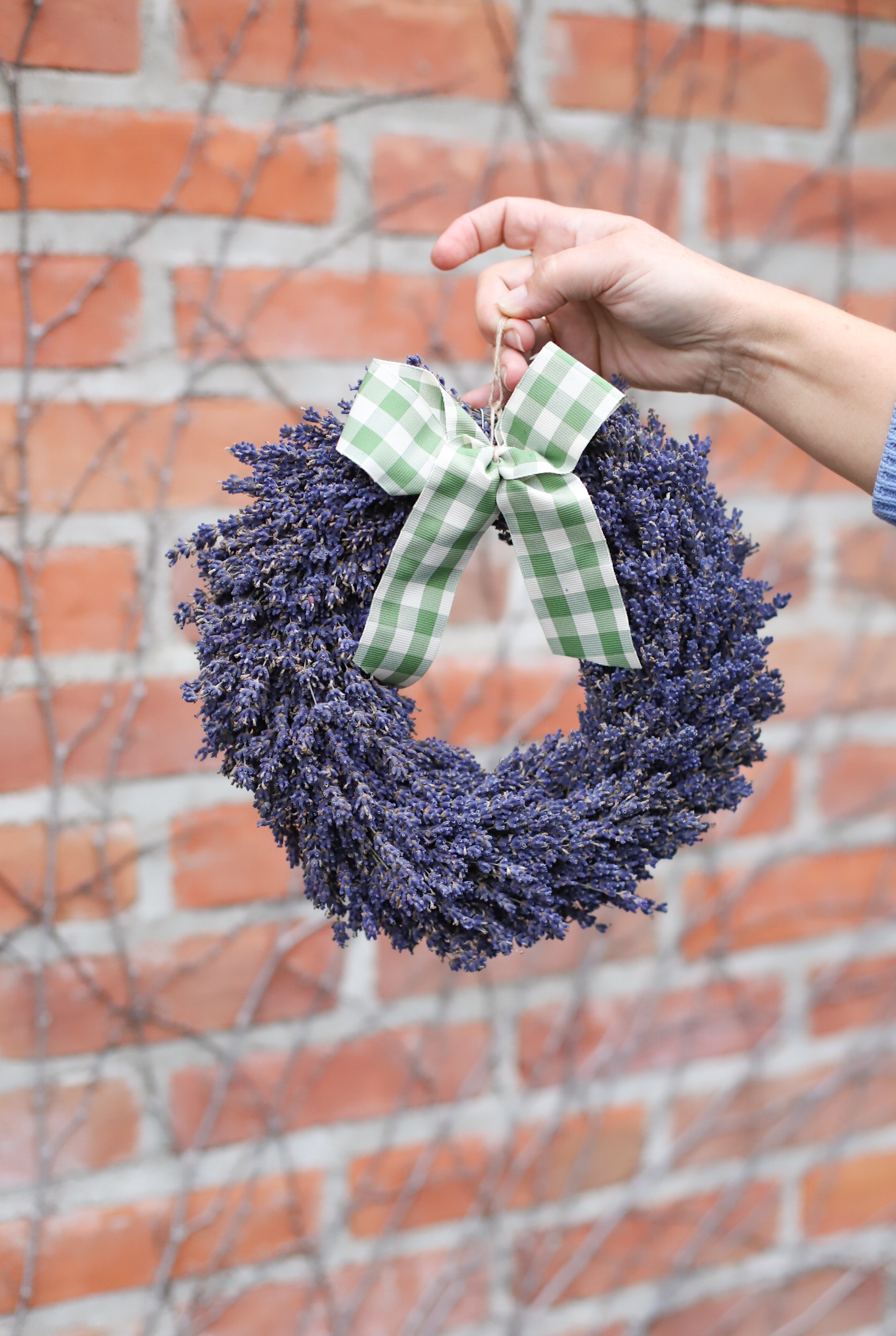 Wianek Lawendowy z zieloną kokardą to wianek na słomianym podkładzie. Wykonany jest z lawendy Havana i Imperial Gem o przepięknym, niebieskim kolorze. Lawenda jest ułożona w taki sposób, że wianek będzie wyglądał pięknie zarówno powieszony na ścianie czy drzwiach jak i położony na stole.
