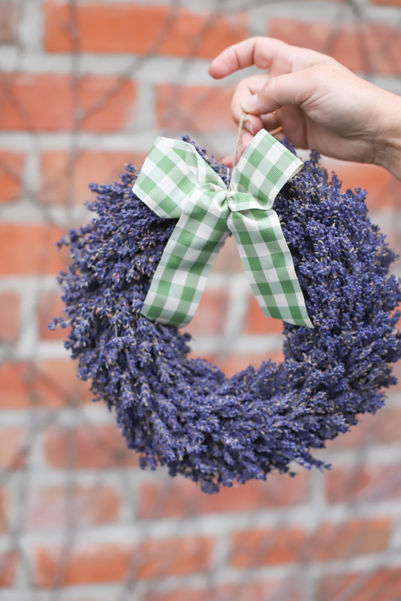 Wianek przyozdobiony jest kokardą w zieloną kratę.