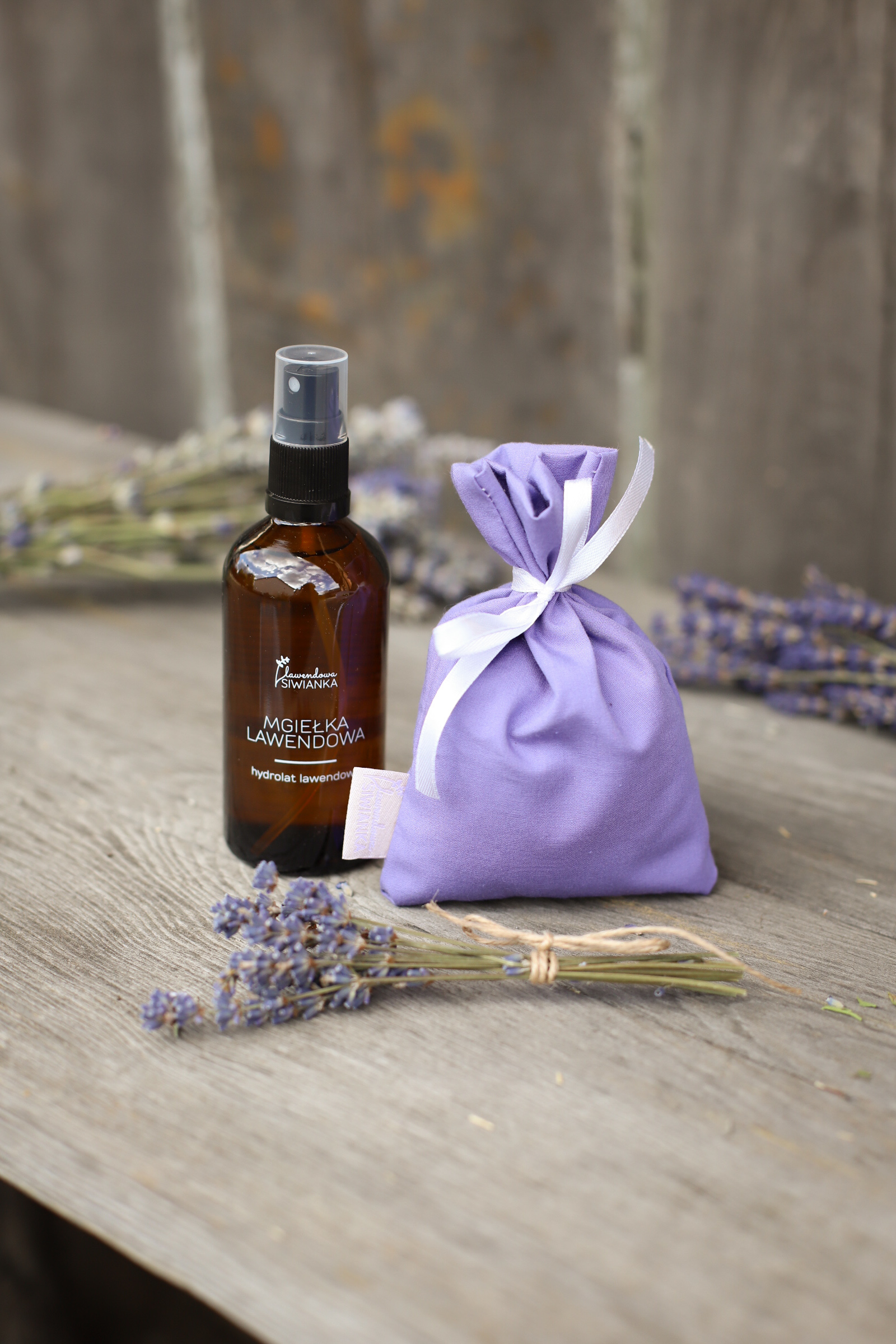 Mgiełka lawendowa zwana inaczej lawendowym hydrolatem, to naturalny wyciąg powstały podczas destylacji lawendy z naszej plantacji. Hydrolaty cenione są w przemyśle kosmetycznym to baza do wyrobu kosmetyków, są delikatniejsze od olejków eterycznych. Hydrolat lawendowy ma działanie podobne do lawendowego olejku eterycznego. Hydrolat z lawendy ma właściwości odkażające i łagodzące.
